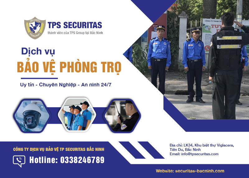 Dịch vụ bảo vệ nhà trọ chuyên nghiệp của Securitas Bắc Ninh giúp kiểm soát ra vào, quản lý bãi xe và phòng chống cháy nổ 24/7. Thuê bảo vệ nhà trọ không chỉ đảm bảo an ninh cho phòng trọ mà còn nâng cao uy tín, giúp chủ nhà an tâm và thu hút người thuê bền vững.